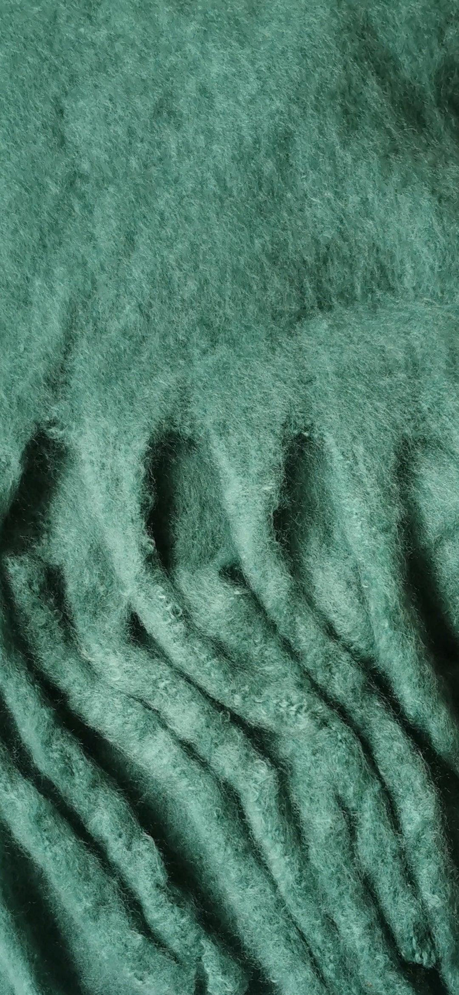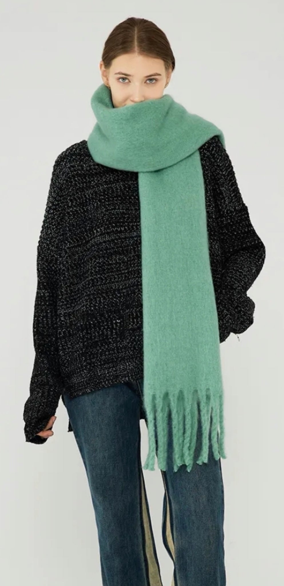 Upgrade your wardrobe and give your outfit the perfect finishing touch. This scarf is a soft cashmere imitation, in a soothing shade of jade green. Dare to use colors that are not autumn/winter classics and bundle up.